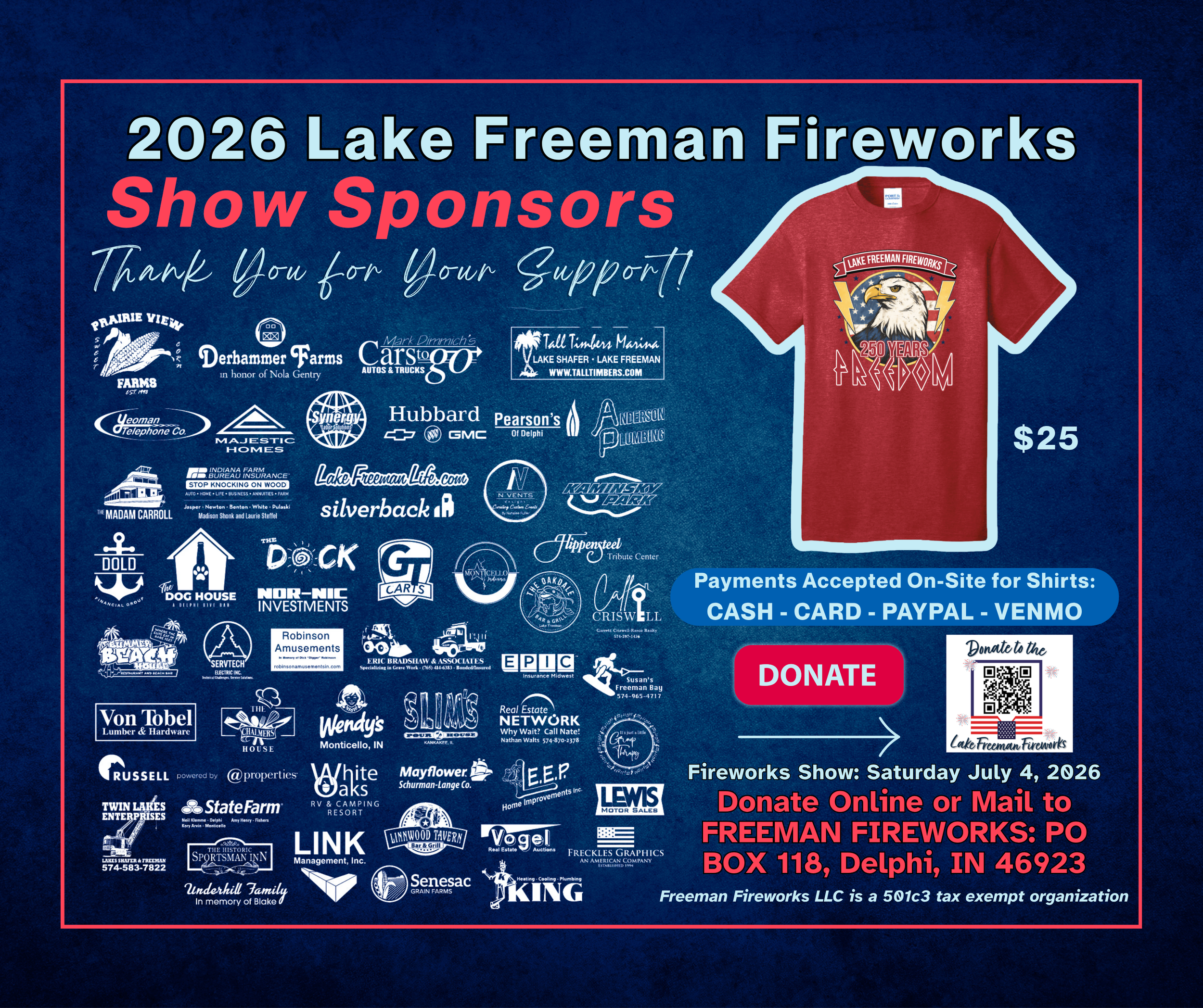 Thank you to our 2026 Lake Freeman Fireworks Sponsors!